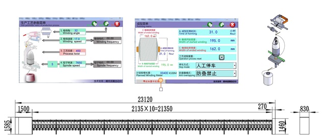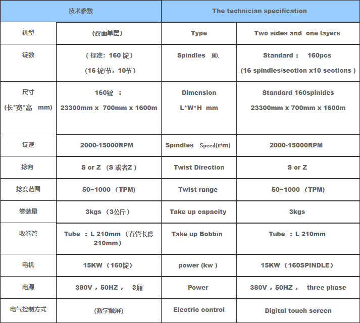 特点:本机采用电脑控制锭速,捻度,捻向系统,并具有卷装容量大,节能降耗,调节方便等特点)
